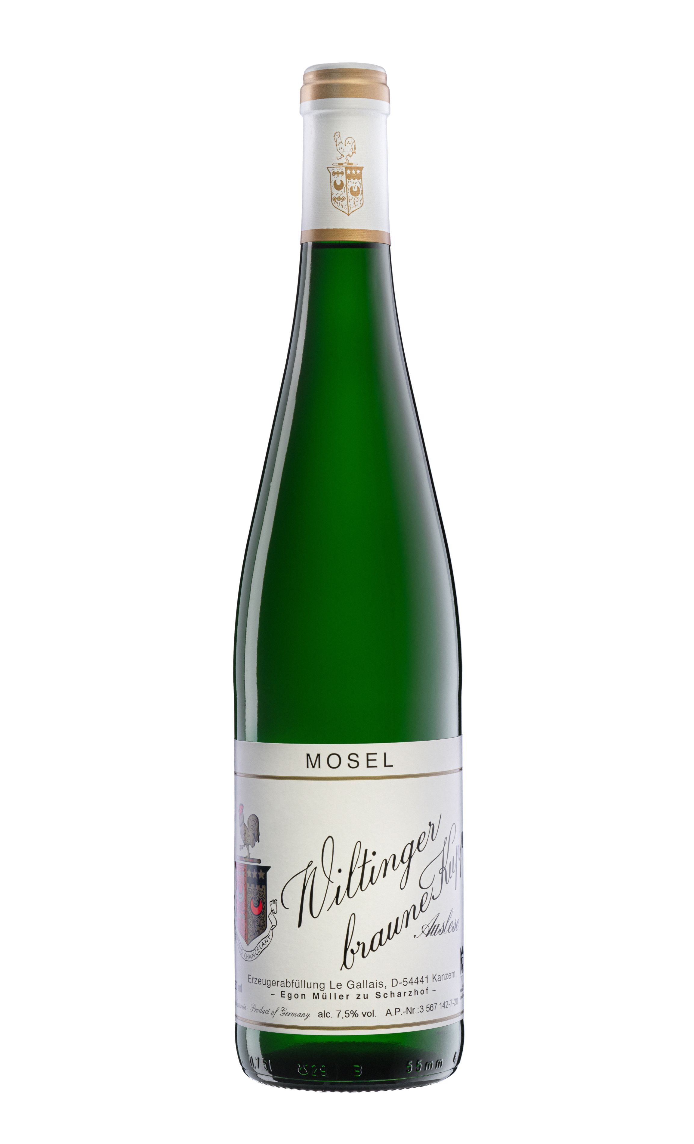 エゴン・ミュラーとル・ガレの単独所有畑ブラウネ・クップのブドウから造る、やや甘口のワイン。鉄っぽいミネラル、ほのかなハチミツ風味を帯びた洋梨や白桃の果実味をきれいな酸が締めた、エレガントで複雑な味わい。ジャスミンやアプリコットなどの優雅な香り。ワイン造りはシャルツホーフベルガーなどのワイン同様、エゴン・ミュラーの醸造所で行われている。